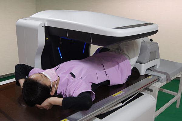 この検査で腰椎・大腿骨など、骨折リスクの高い部位を測定します。